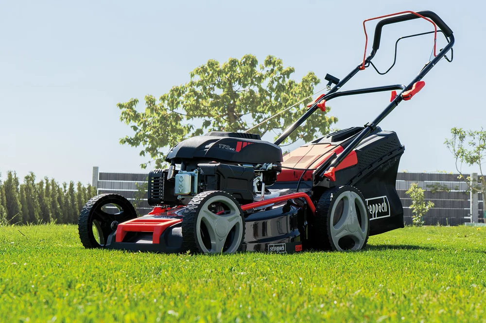 - Leistungsstarker Motor: Der Mäher ist mit einem Benzinmotor ausgestattet, der ausreichend Leistung bietet, um problemlos große Flächen zu mähen.