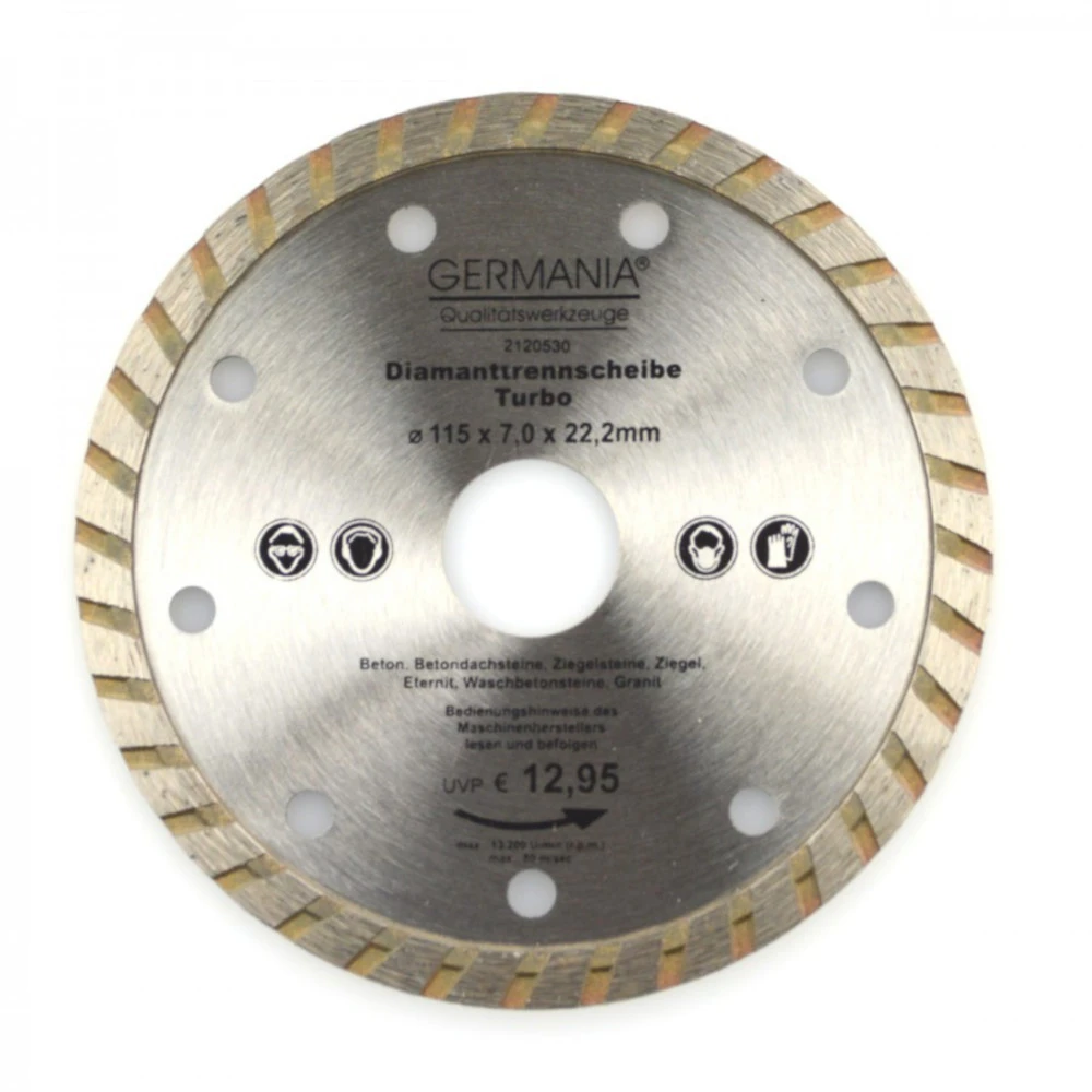 Die ungewöhnliche HĂ€rte und besondere Schnittfreudigkeit begeistert Profis und Hobby-Handwerker gleichermaĂen. Hergestellt wird die Diamant-Trennscheibe aus zwei Teilen. Zum einen besitzt sie einen innen liegenden Körper aus Metall. Auf diesen wird die SchneideflĂ€che aufgesetzt. Dieses besondere Segment ist mit Industriediamanten versetzt, welche der Trennscheibe zu ihrer HĂ€rte und Schnittfestigkeit verhelfen. Die eingesetzten Diamanten werden industriell hergestellt da Naturdiamanten zu brĂŒchig und spröde sind. Mit dieser Turbo Trennscheibe können Sie an Beton (alt, armiert), Betondachstein, Ziegelstein, Ziegel, Eternit, Granit, Marmor und Waschbetonstein arbeiten. Die Diamanttrennscheibe eignet sich fĂŒr harte Werkstoffe.
