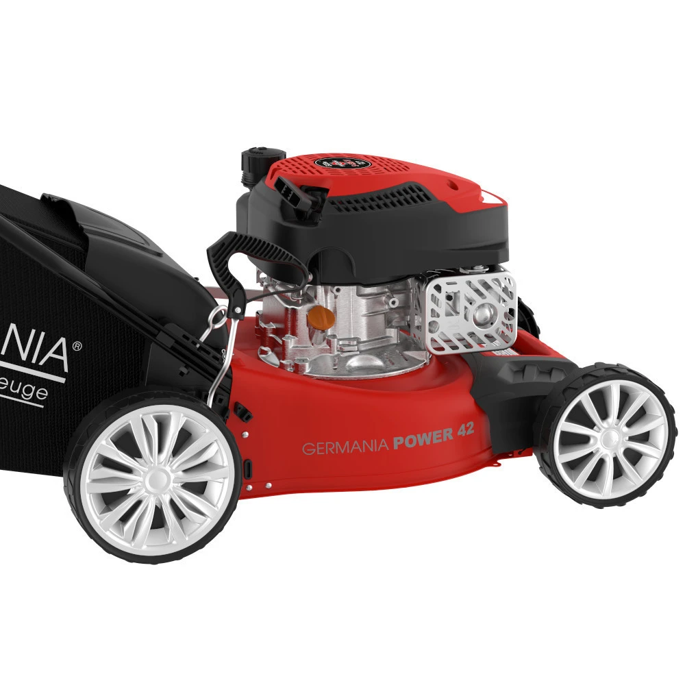 - 1 x Germania Benzin RasenmÀher Power 42 mit 2,7 PS und Hinterradantrieb