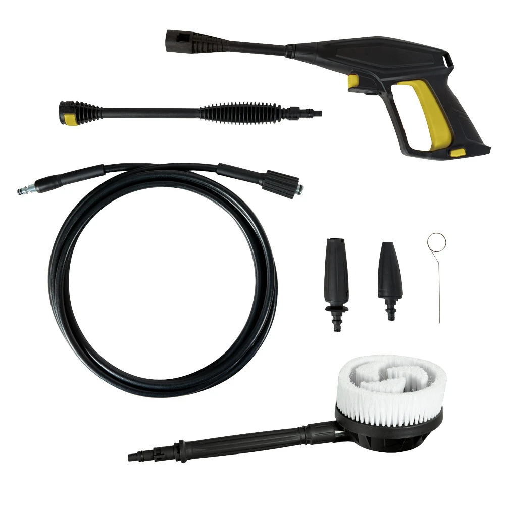 Hochdruckreiniger mit leistungsstarker Aluminium-Hochdruckpumpe fĂŒr bis zu 420l/h Fördermenge. Inklusive Auto-Start-Stopp-System mit Kindersicherung. Einfacher ReinigungsdĂŒsen-Wechsel durch Dreh-Klick-Verbindung, integrierte Zubehör- und Kabelhalterung, unkomplizierte Handhabung durch groĂe RĂ€der und klapp- und ausziehbaren Transportgriff.