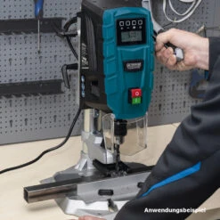 Die digitale Tischbohrmaschine TBM 710D von GERMANIA ist eine robuste Bohrmaschine mit integrierter LaserfĂŒhrung fĂŒr prĂ€zise Serienbohrungen in Metall und Holz. Eine exakte Einstellung der Drehzahl von 500 – 2600 min-1 erfolgt auf dem Digitaldisplay. Zur leichteren Fixierung der WerkstĂŒcke in der Standbohrmaschine mit einer Schnellspannklemme versehen.